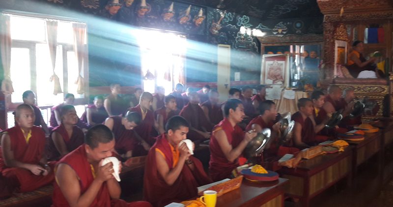 Sachen Trust made flower offering during the Mahakala Grand Ritual at the Sakya centre monastery on 30th October, 2016. This ritual, for overcoming obstacles in one’s spiritual path and one’s life, was performed by monks of Sakya centre, where prayers, rituals are performed for the removal of obstacles and success in all beings’ activities, leading to peace and happiness.