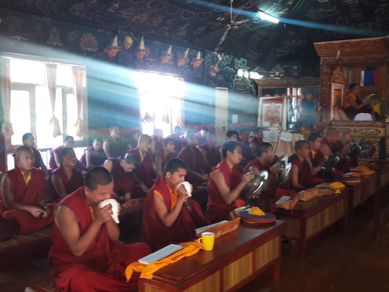 Sachen Trust made flower offering during the Mahakala Grand Ritual at the Sakya centre monastery on 30th October, 2016. This ritual, for overcoming obstacles in one’s spiritual path and one’s life, was performed by monks of Sakya centre, where prayers, rituals are performed for the removal of obstacles and success in all beings’ activities, leading to peace and happiness.